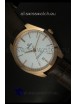 White Dial with Date Window at 6 O'Clock with Rose Gold Hour Markers, Hands and Bezel