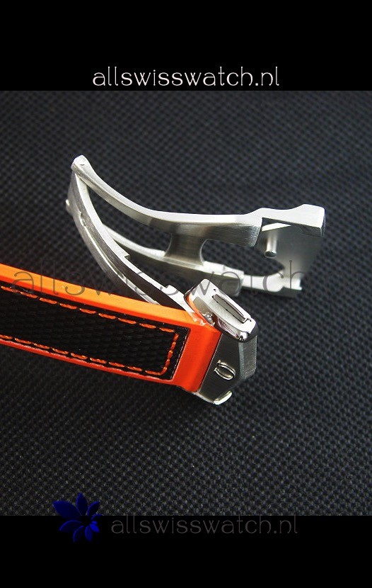 Black Rubber-Clad Nylon Strap with Deployment Clasp complete with Omega Markings as per the Original.