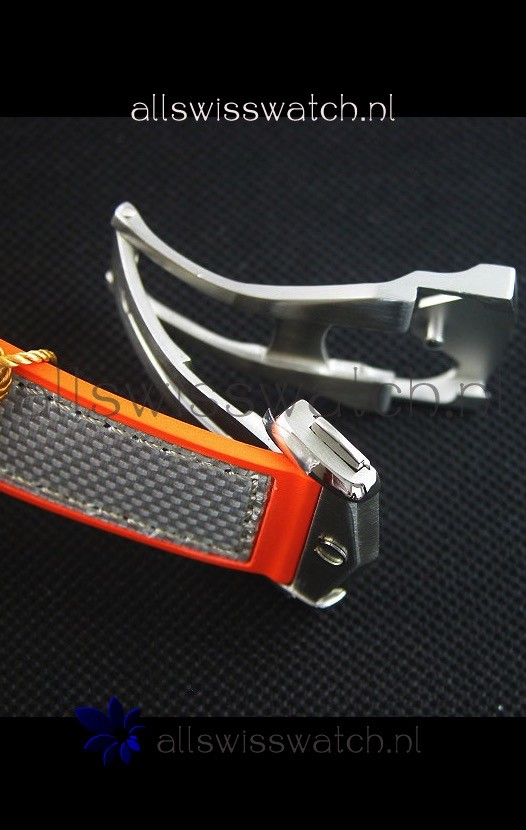 Grey Rubber-Clad Nylon Strap with Deployment Clasp complete with Omega Markings as per the Original.