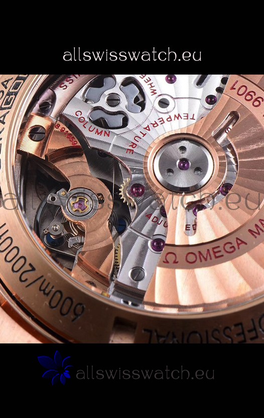 18K Rose Gold Plating on 904L Stainless Steel Strap with Omega Styled Folding Clasps complete with Omega Markings and Engravings
