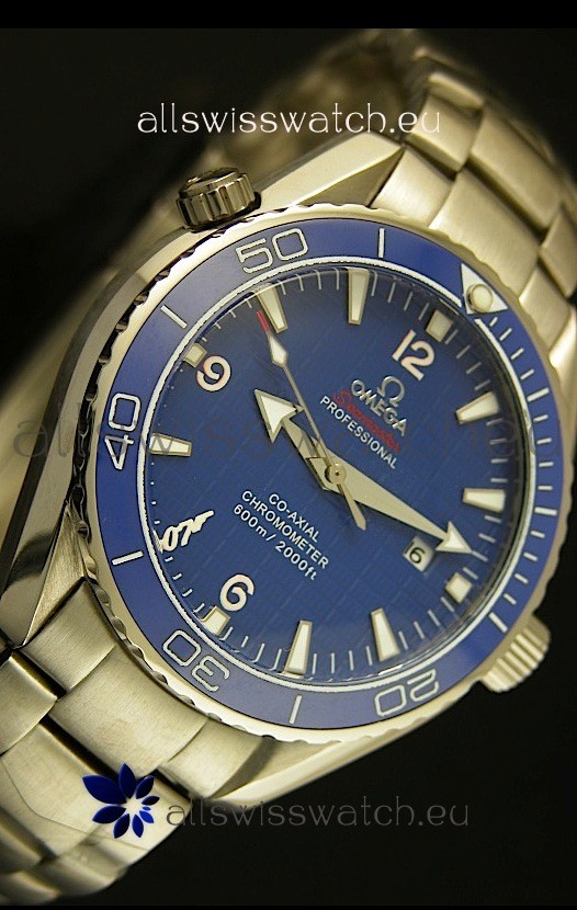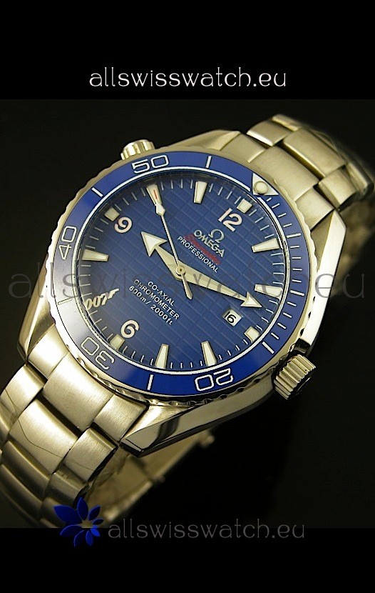 Blue Dial with Date Window at 3 O'Clock and 007 Emblem at 7 O'Clock Marker