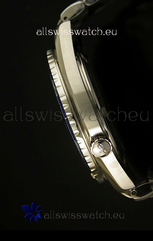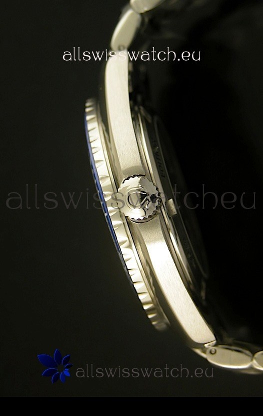 440 Stainless Steel with Genuine Blue Ceramic Bezel.