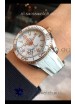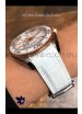 White Ceramic Dial with Gold Markers and Date Indicator