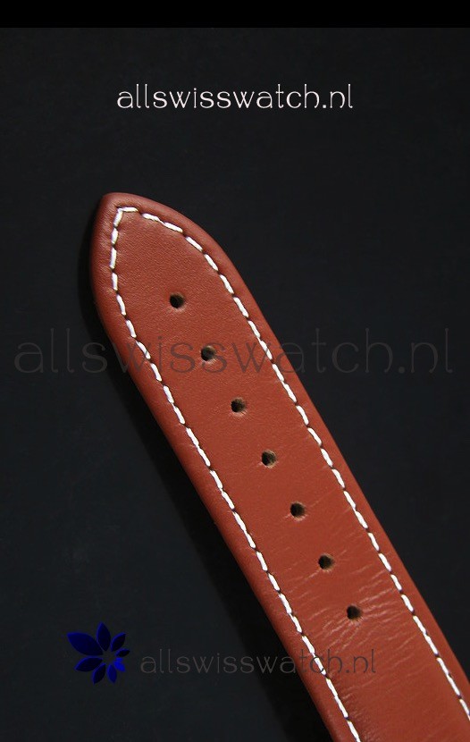Genuine Brown Leather Strap with Single Folding Clasp in 18K Gold Plating