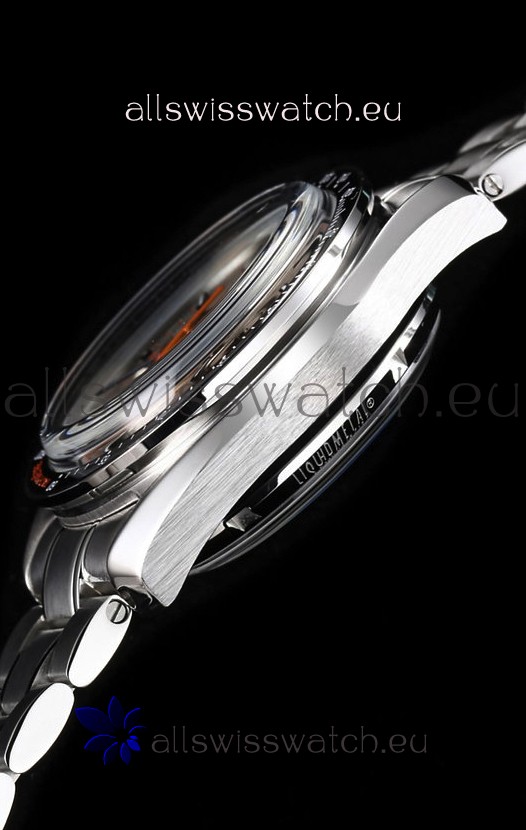 904L Solid Polished Stainless Steel Case with Black Tachymeter Bezel .