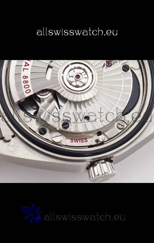 Genuine Swiss 21 Jewels Base Movement decorated to Resemble the Omega 8800 Moevment.