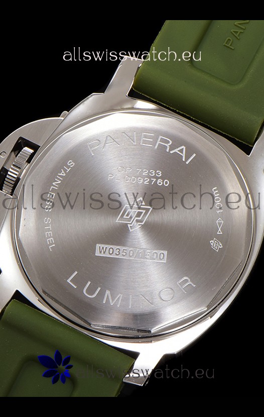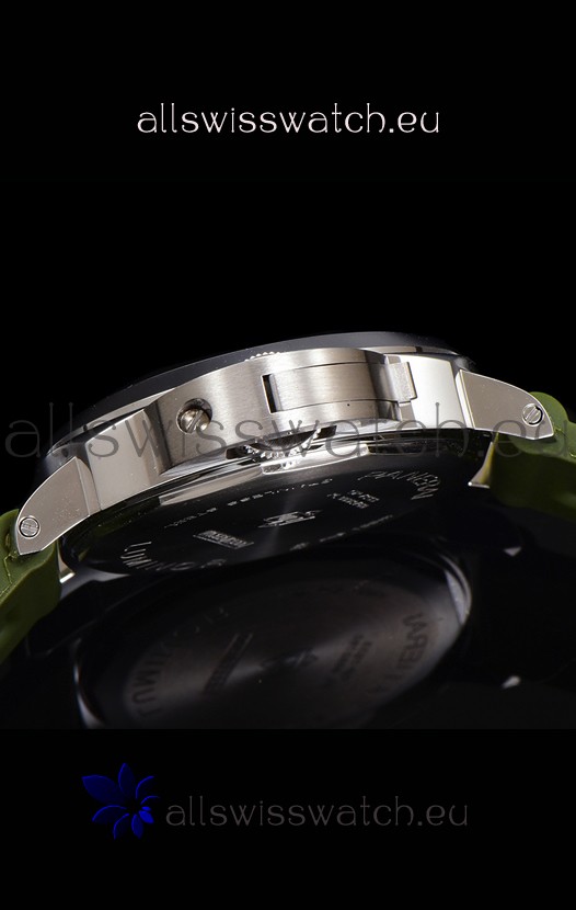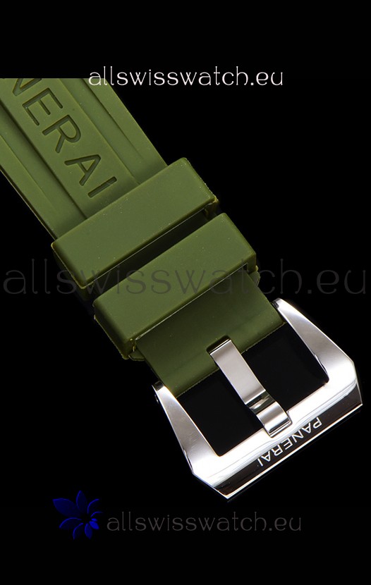 Genuine Green Rubber Strap with Steel Tang Buckle complete with Panerai Markings and Engravings.