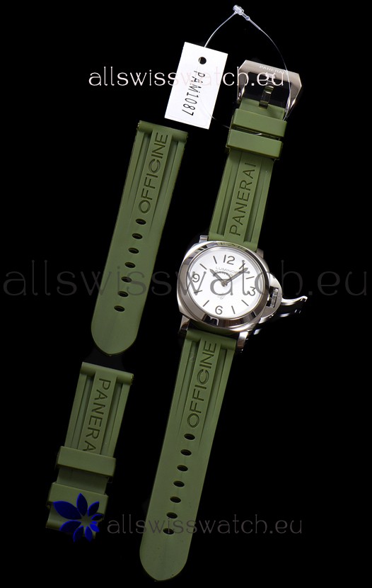 You're reviewing: Panerai Luminor Base Logo PAM1087 White Dial 1:1 Mirror Quality - 904L Steel in Rubber Strap