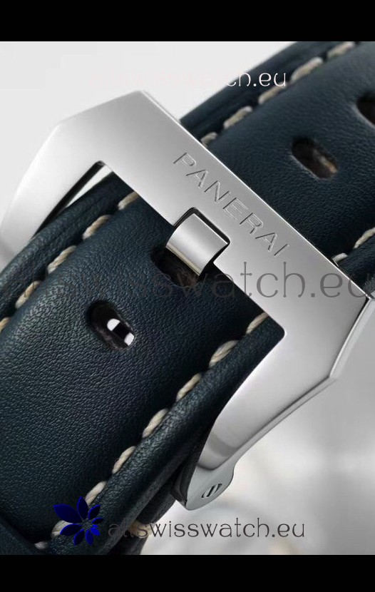 Genuine Leather Strap with Steel Tang Buckle complete with Panerai Markings and Engravings.