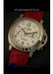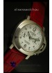 Red Leather Strap with Stainless Steel Butterfly Clasps with Panerai Markings and Engravings (Strap can be swapped to Brown, Black Blue or Rubber on request)