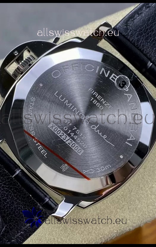 Genuine Swiss Modified 7750 movement Reassembled to resemble the P.9000 Movement. Bridges and Rotor Decorated to resemble the Calibre P.9000 Movement by Panerai