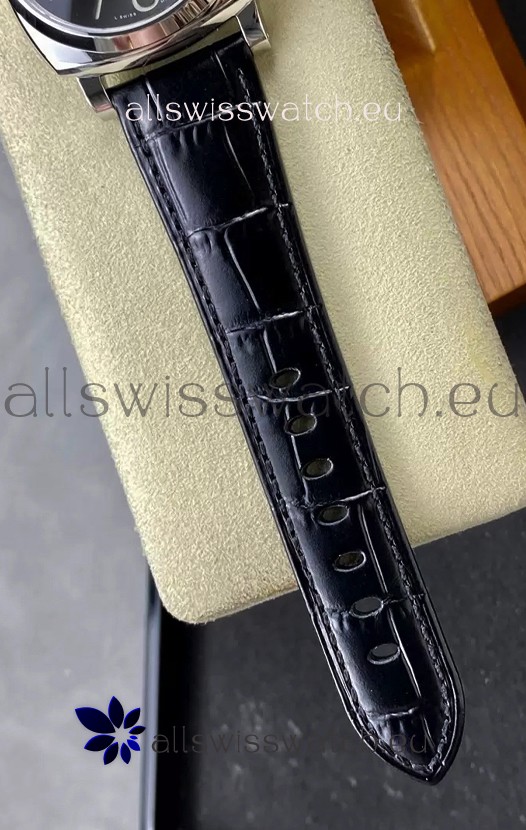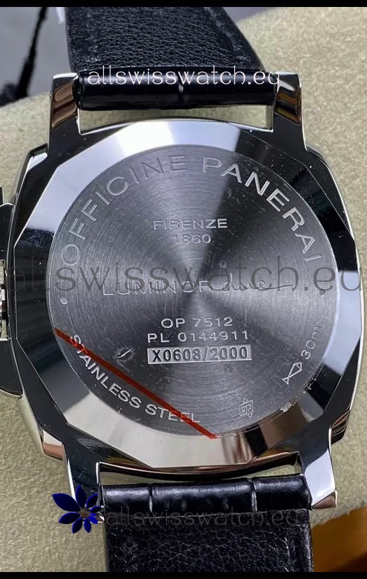 Genuine Swiss Modified 7750 movement Reassembled to resemble the P.9000 Movement. Bridges and Rotor Decorated to resemble the Calibre P.9000 Movement by Panerai