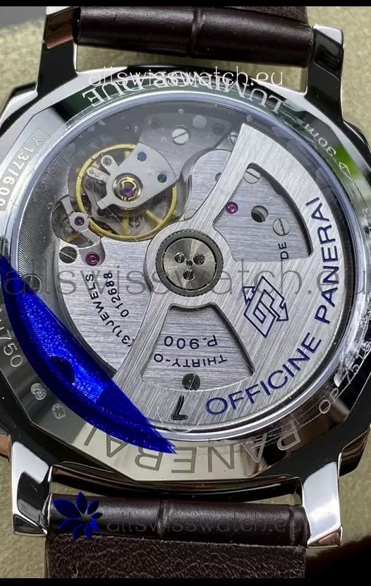 Genuine Swiss Modified 7750 movement Reassembled to resemble the P.9000 Movement. Bridges and Rotor Decorated to resemble the Calibre P.9000 Movement by Panerai