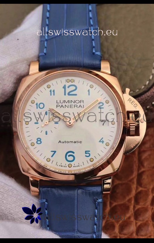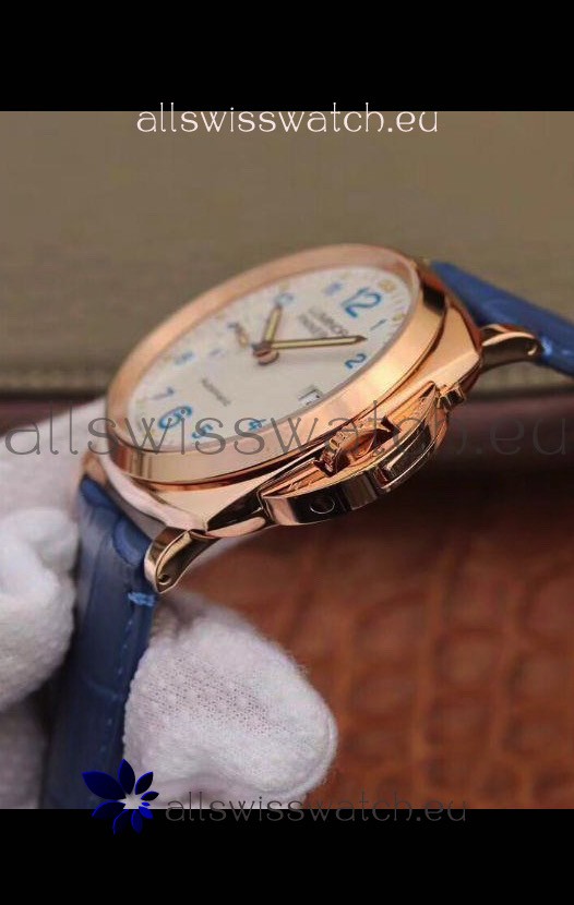 Genuine Leather Strap with with Rose Gold Tang Buckle complete with Panerai Markings and Engravings