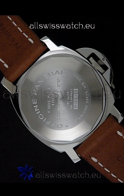 Case: 440 Polished Stainless Steel Casing with Panerai Markings and Solid Case Back