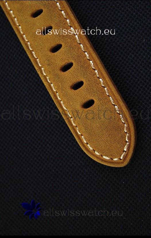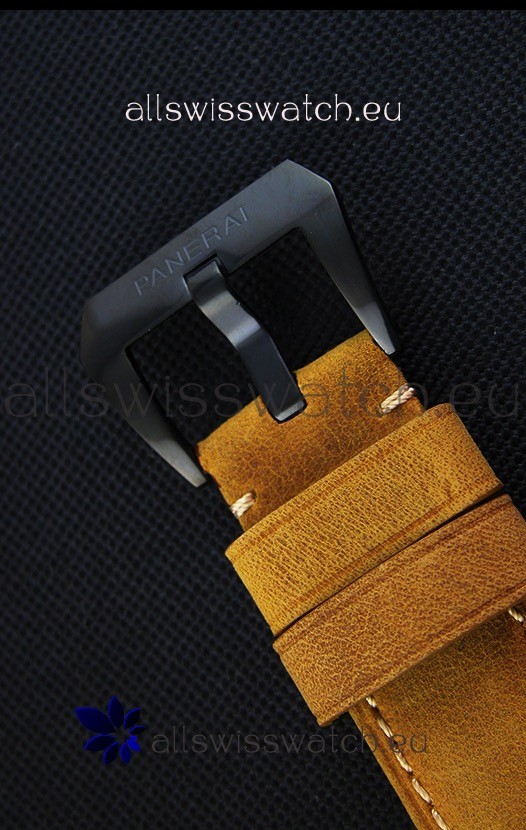 High Quality Brown Leather Strap with PVD Coated Tang Buckle complete with Panerai Markings and Engravings