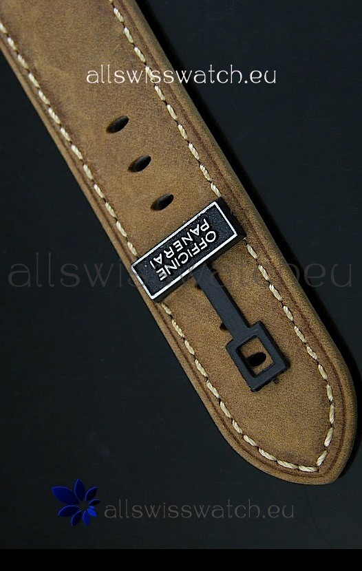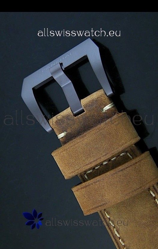 Genuine Brown Hand Stitched Leather Strap with DLC Coated Tang Buckle