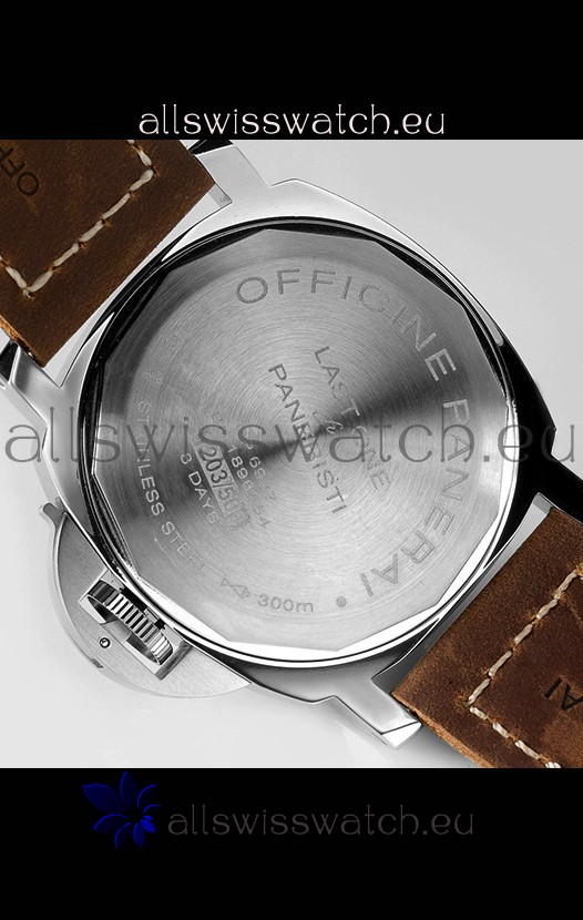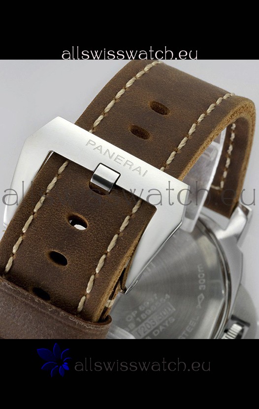 Genuine Leather Strap with Steel Tang Buckle complete with Panerai Markings and Engravings.
