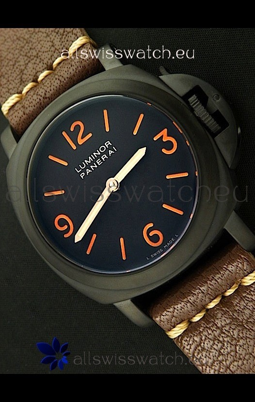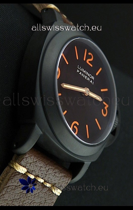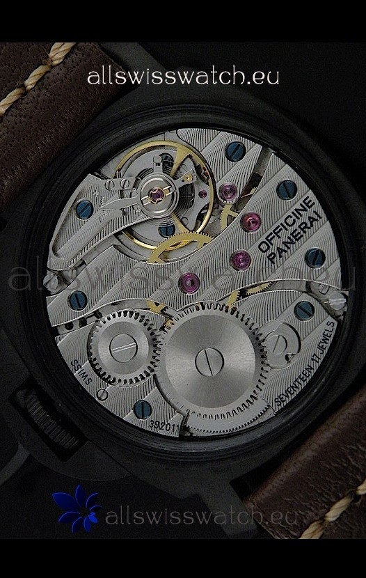 Watch name: Panerai Luminor Marina Black Seal PVD Swiss Watch in Dark Brown Strap