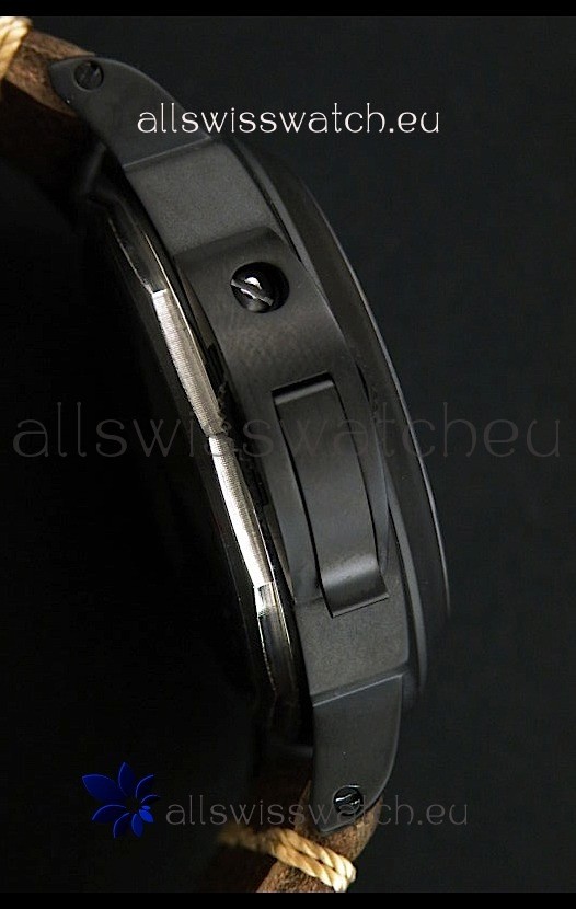 Panerai Luminor Marina Black Seal PVD Swiss Watch in Dark Brown Strap