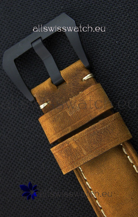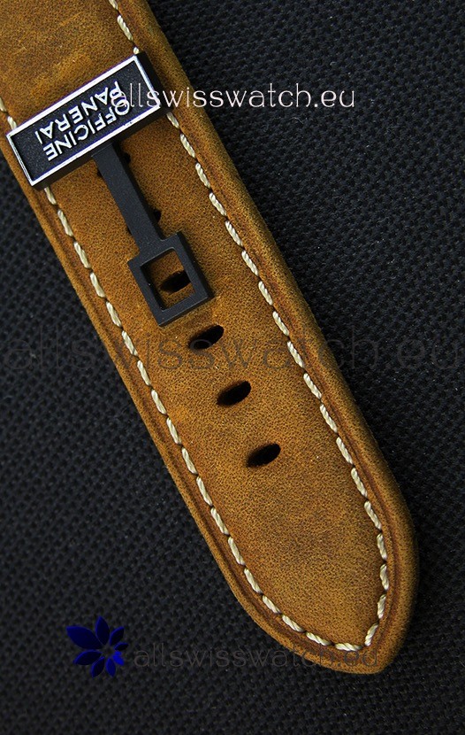 Brown Assolutamente Leather strap with White Stitching with DLC Coated Tang Clasp