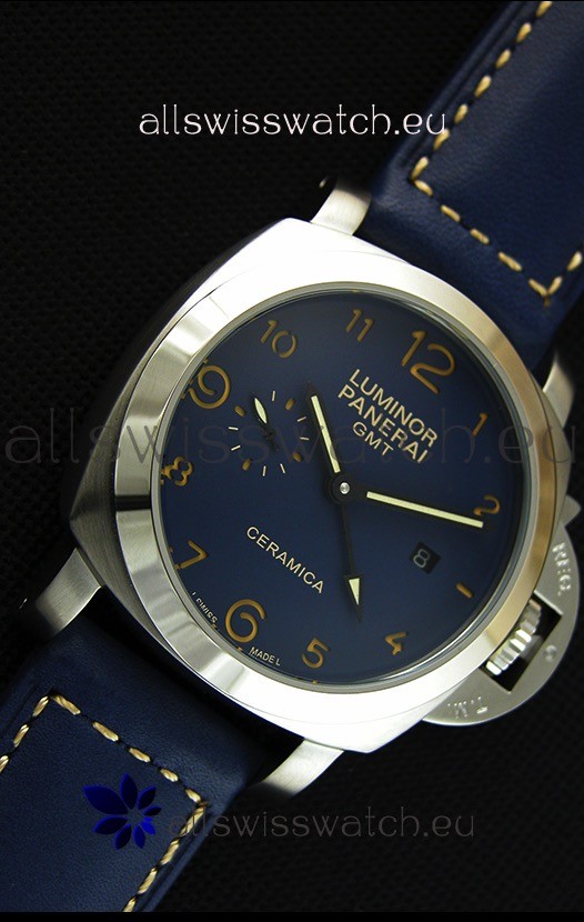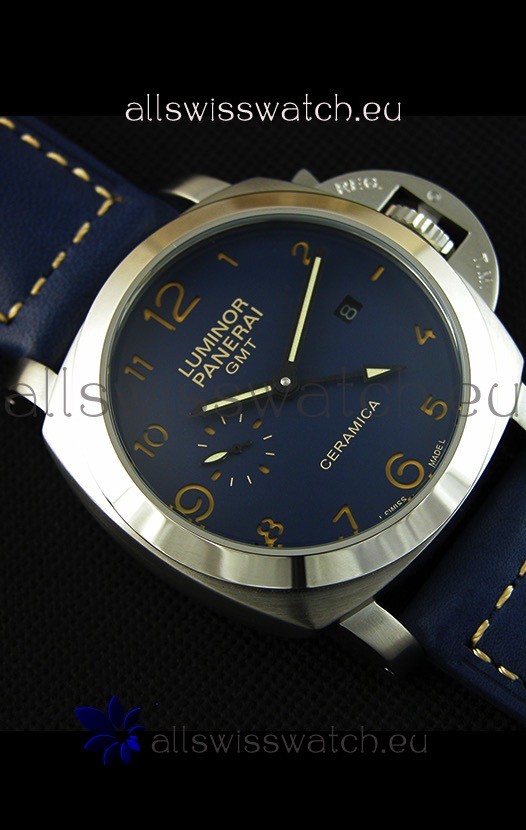 Top Grade Panerai Luminor Marina GMT Ceramica Stainless Steel Japanese Replica Watch with Free Shipping and 1 year warranty