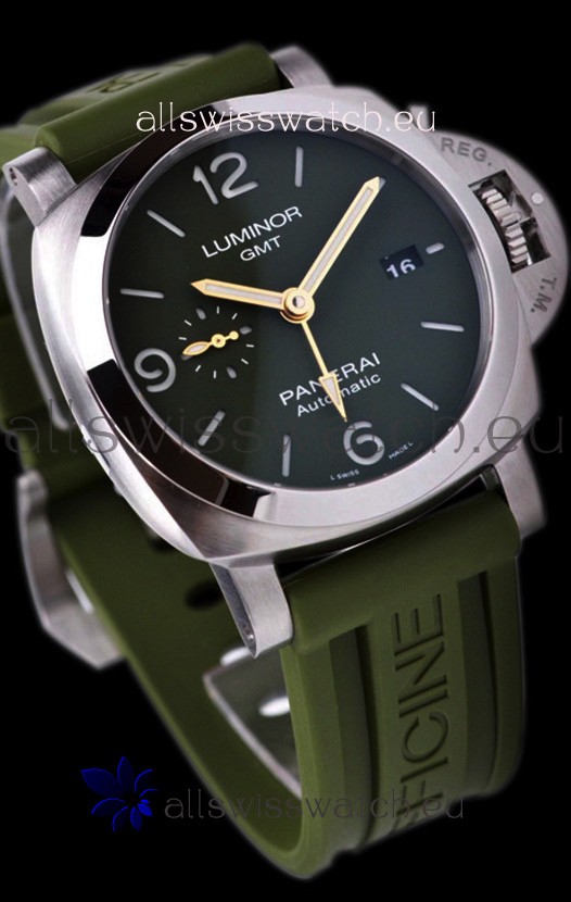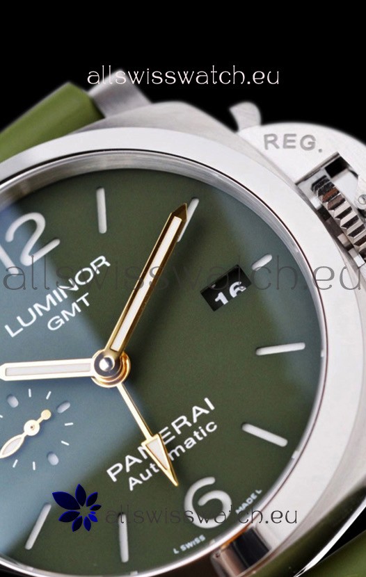 Green Sandwich Dial with Functional Sub Dial for Seconds Hand Function and Functional GMT Hand