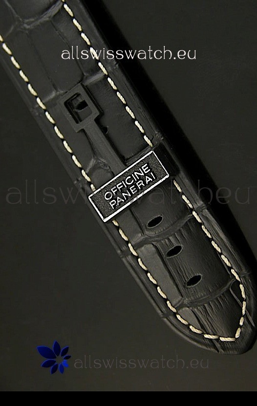 Genuine Leather Strap equipped with Stainless Steel Tang Buckle with Panerai Markings/Engravings