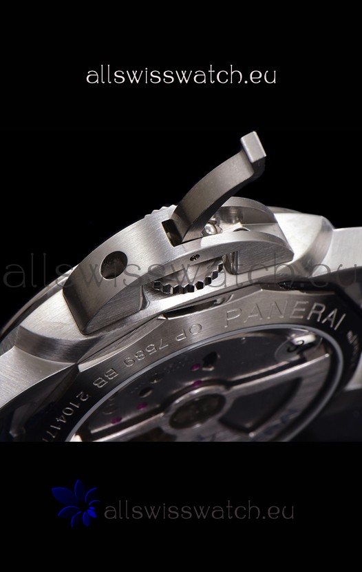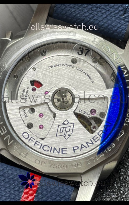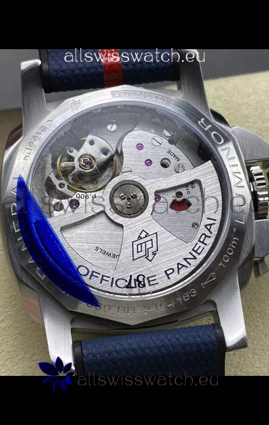 Genuine Swiss Modified 7750 movement Reassembled to resemble the P.900 Movement. Bridges and Rotor Decorated to resemble the Calibre P9001 Movement by Panerai