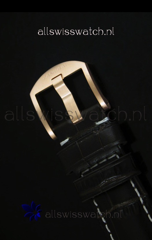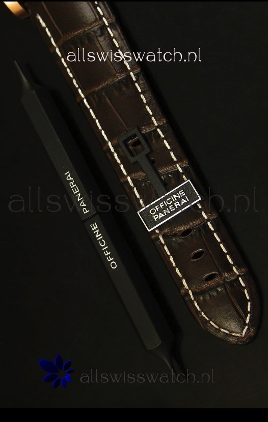 Genuine Dark Brown Leather Strap with 18K Rose Gold Plated Steel Tang Buckle . Special Tool for Strap Removal Included.