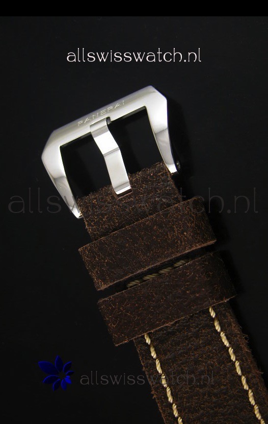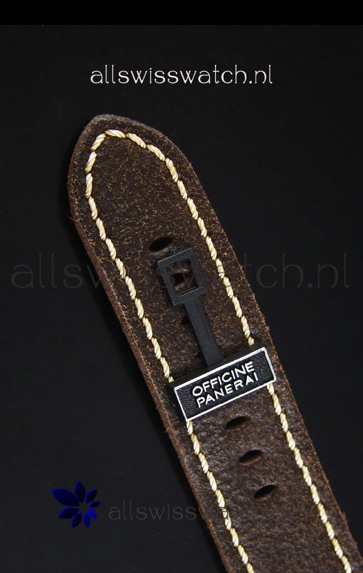Genuine Soft Black Distressed Calf Skin Strap with Steel Tang Buckle complete with Panerai Markings and Engravings.