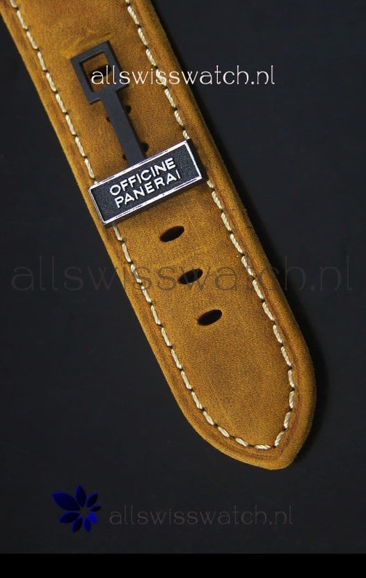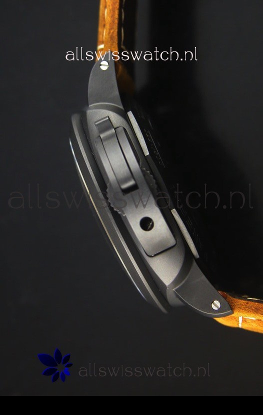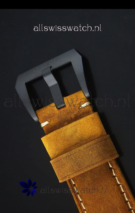 Dark Brown Assolutamente Leather Strap with DLC Coated Buckle complete with Panerai Markings and Engravings