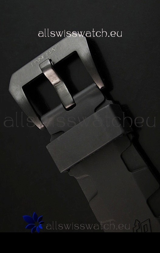 Genuine Black Rubber Strap with PVD/Stainles Steel Tang Buckle