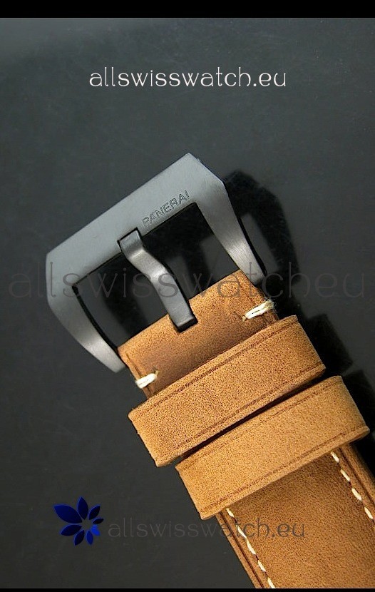 Genuine Leather Strap equipped with Stainless Steel DLC Coated Buckle with Panerai Markings/Engravings