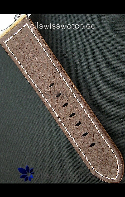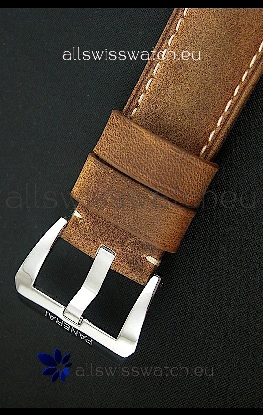 Strap: Brown Leather Handsewn Strap with Pre V Polished Stainless Steel Buckle