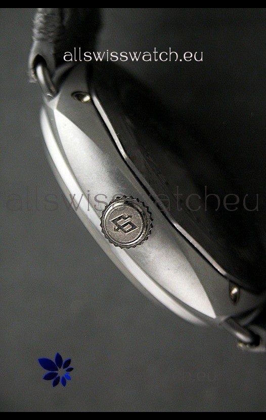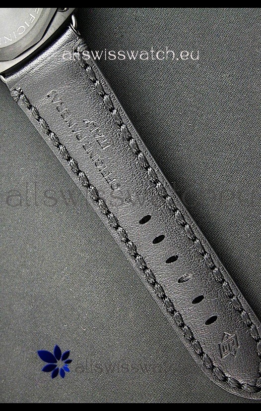 Strap: High Quality Calf Black Double Stich Leather Band with DLC Black Coated Pre-V Buckle