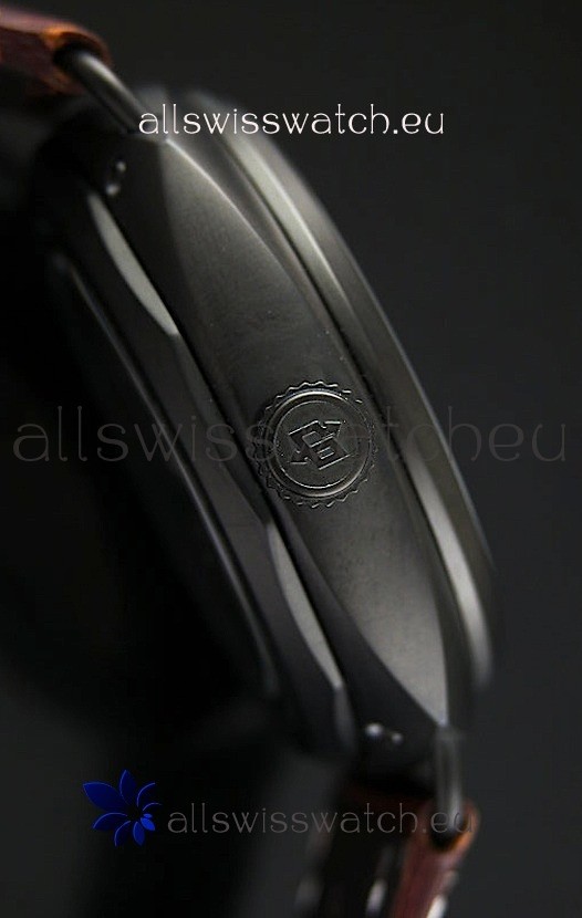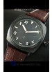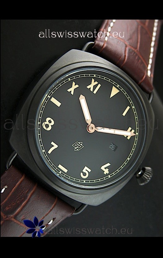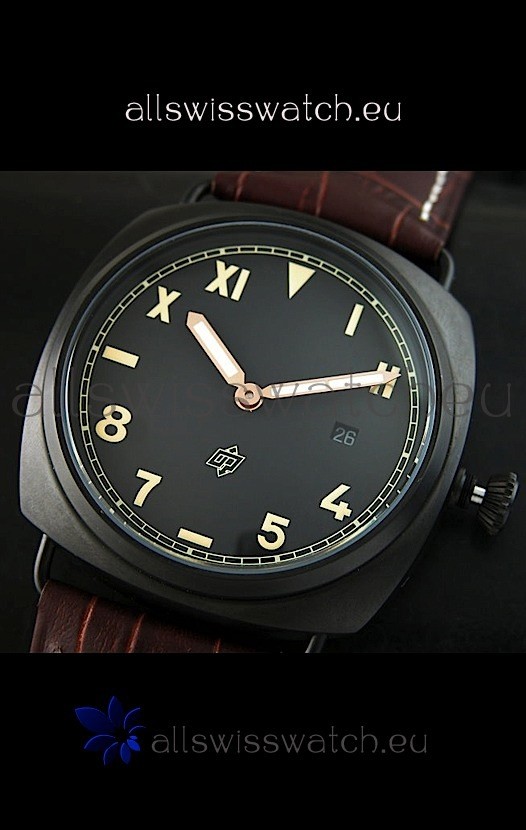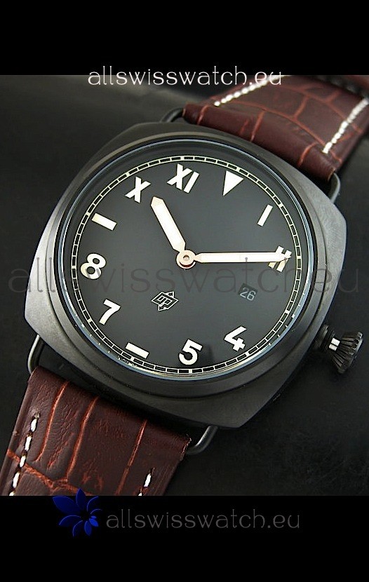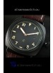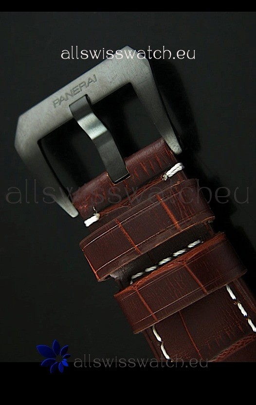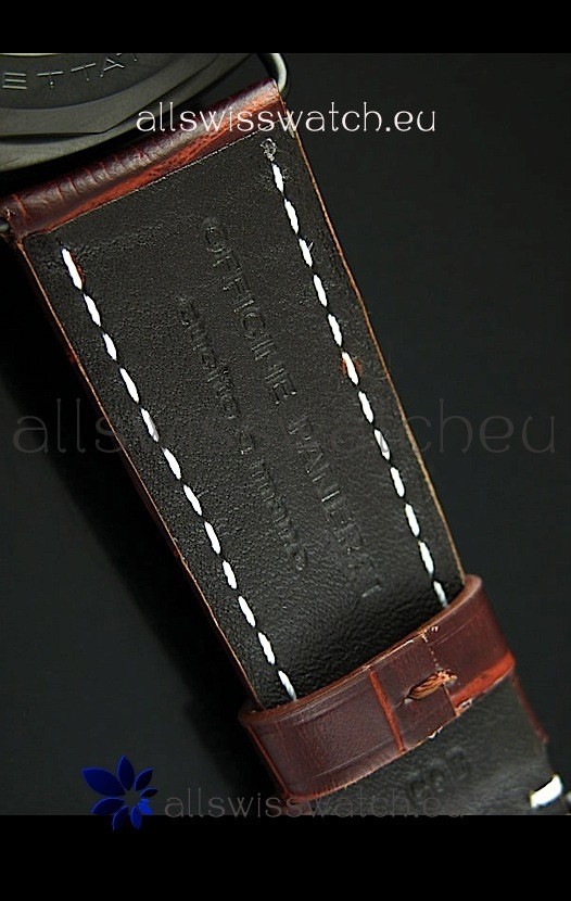 Genuine Black Leather Strap equipped with PVD Coated Stainless Steel Buckle with Panerai Markings/Engravings