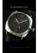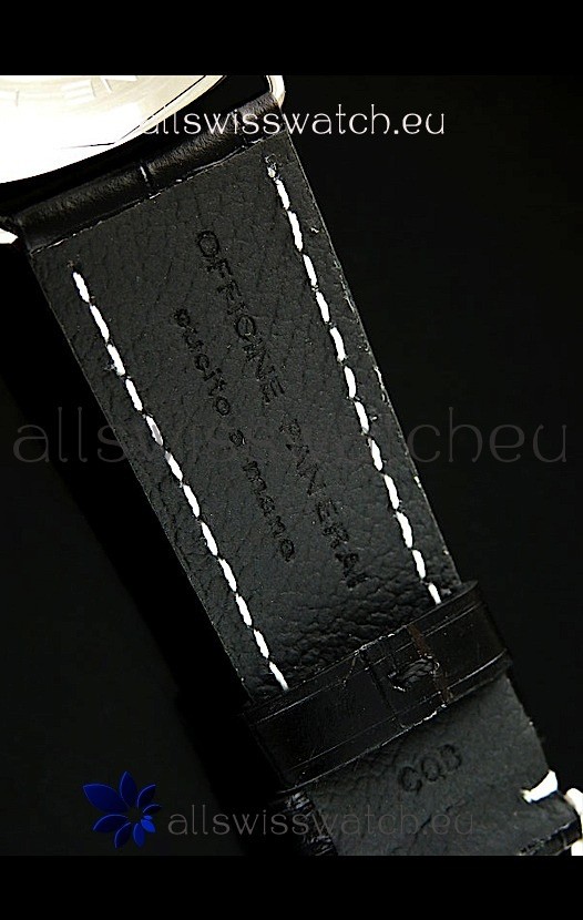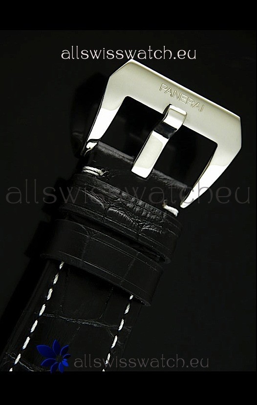 Genuine Black Leather Strap equipped with Stainless Steel Buckle with Panerai Markings/Engravings