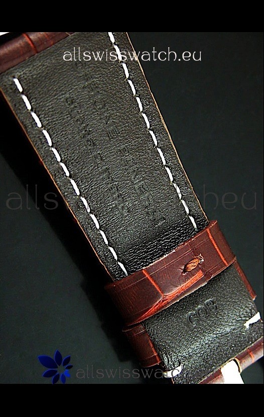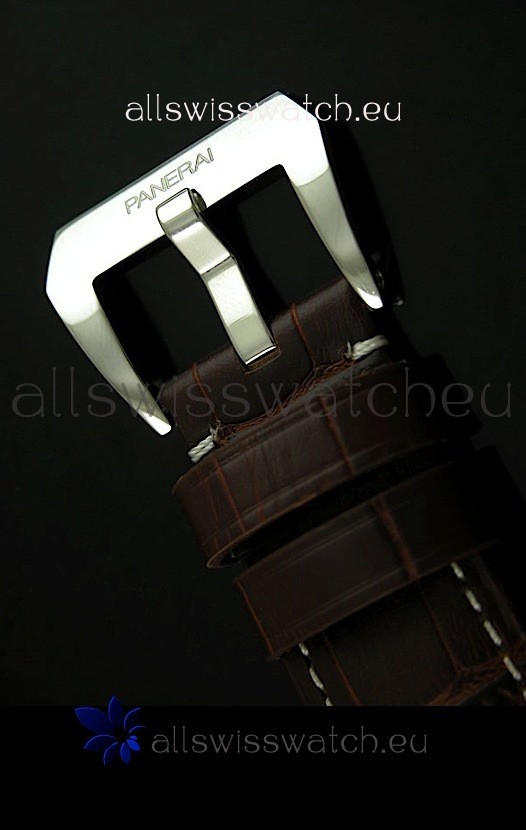 Genuine Brown Leather Strap equipped with Stainless Steel Buckle with Panerai Markings/Engravings
