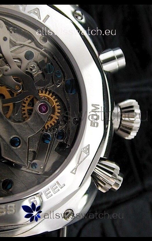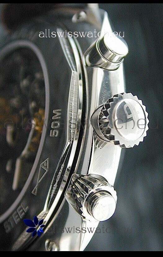 Function: Hour, Minute, Second, Three Silver Functional Subdials, Numeral and Stick Markers and Stopwatch Feature like Authentics