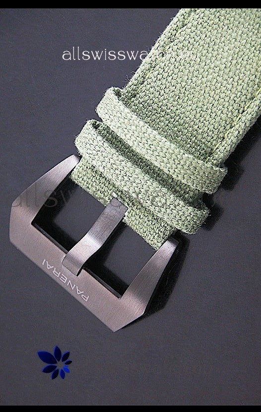 Strap: Two Tier Military Green Nylon Base Leather Strap with Pre V style Tang Buckle