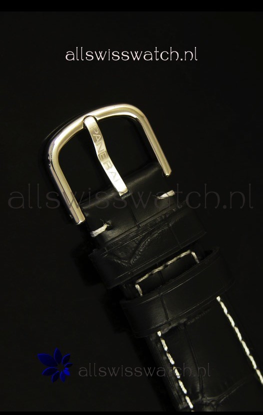 Genuine Black Leather Strap with Stainless Steel Tang Buckle