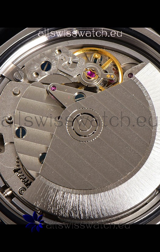 Genuine Swiss Modified 7750 movement Reassembled to resemble the P9010 Movement. Platinum Coated Bridges and Rotor Decorated to resemble the Calibre P900 Movement by Panerai