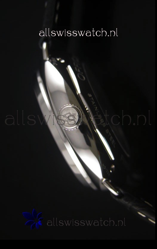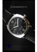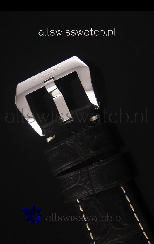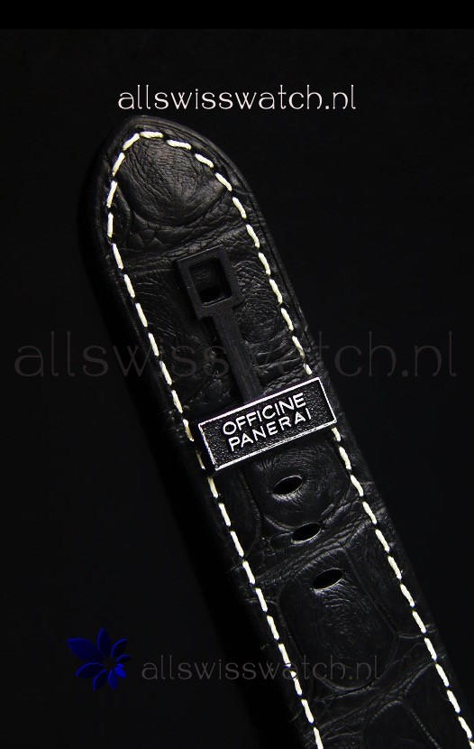 Black Leather Strap with Steel Tang Buckle complete with Panerai Markings and Engravings.