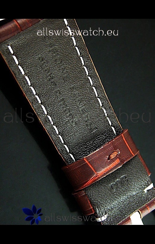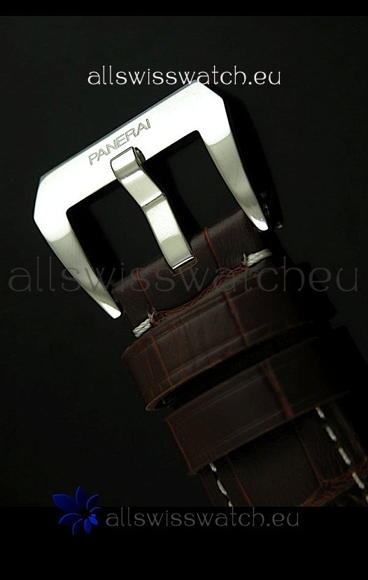 Genuine Brown Leather Strap equipped with Stainless Steel Buckle with Panerai Markings/Engravings