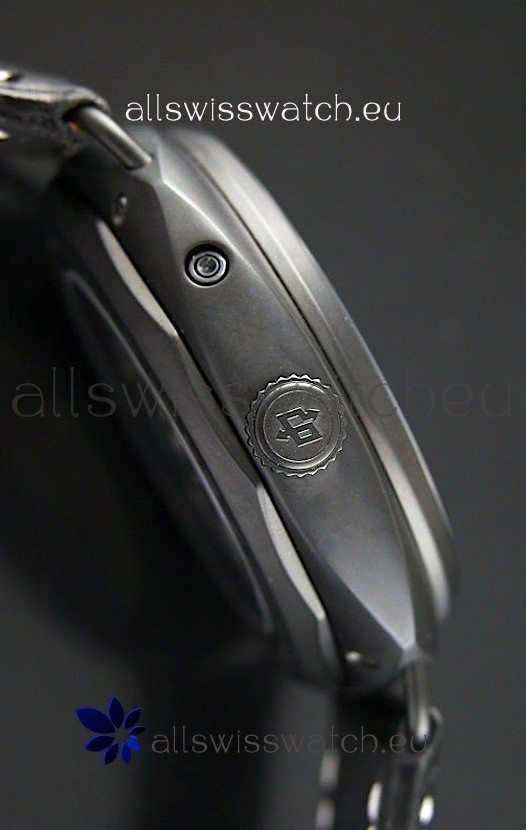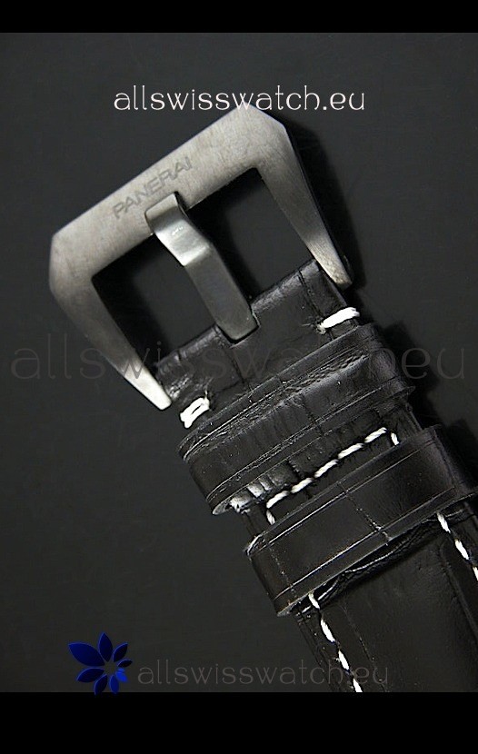 Genuine Black Leather Strap equipped with PVD Coated Stainless Steel Buckle with Panerai Markings/Engravings