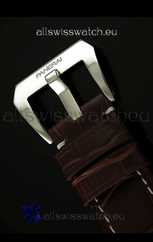 Genuine Brown Leather Strap equipped with Stainless Steel Buckle with Panerai Markings/Engravings