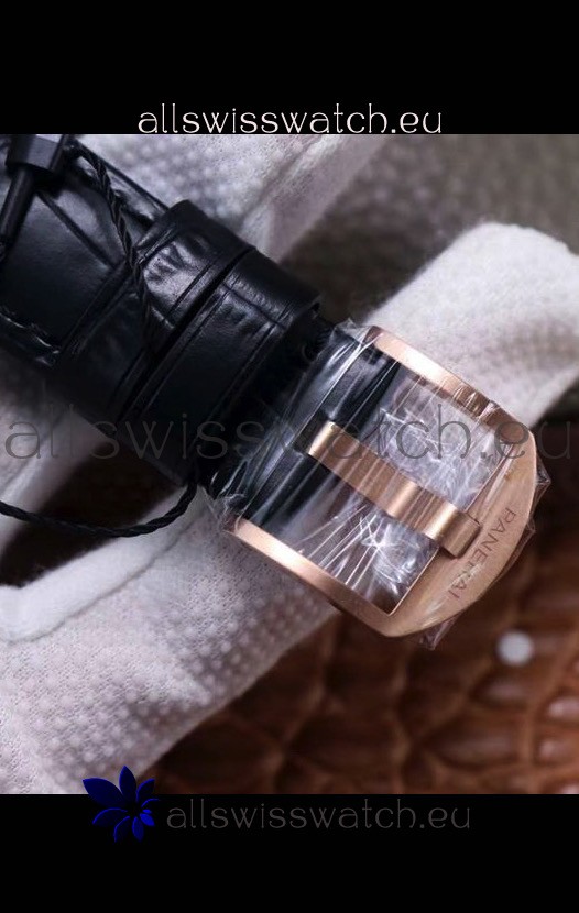 Genuine Leather Strap with Tang Buckle in Steel with Rose Gold finish - Complete with Panerai Markings and Engravings