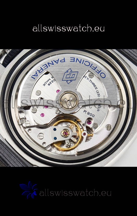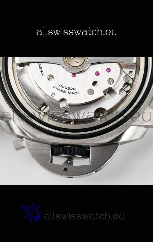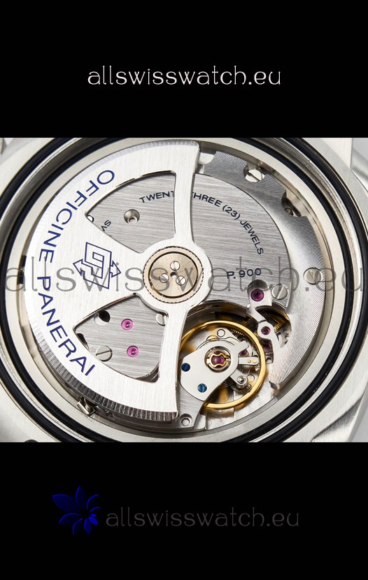 Genuine Swiss 7750 Movement which is best up to date. 28,800 Vibrations Per Hour . Platinium Plated Rotor Plate on Movement. Movement Decorated to resemble P.900 Movement