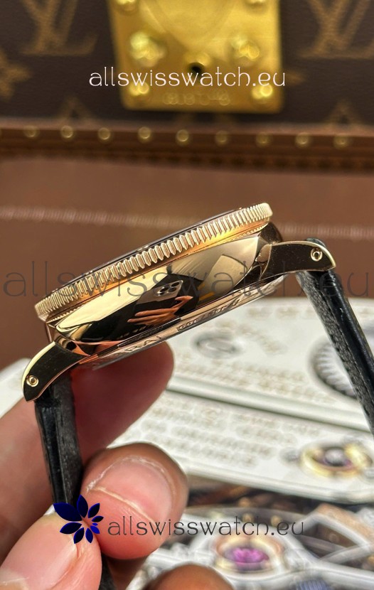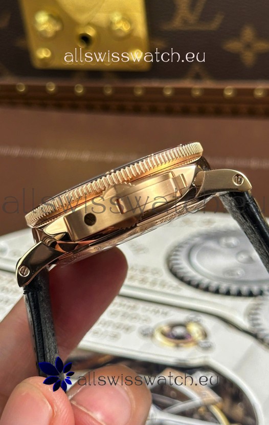 18K Rose Gold Plating on 904L Brushed Stainless Steel Casing with Rotating Bezel